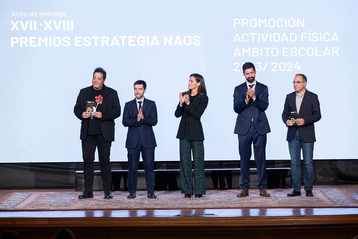 Su Majestad la Reina doña Letizia ha presidido este jueves 18 de diciembre la XVI Convención NAOS (Nutrición, Actividad Física y Prevención de la Obesidad) y el acto de entrega de los XVII y XVIII Premios Estrategia NAOS que se han celebrado en la sede de la Agencia de Seguridad Alimentaria y Nutrición (AESAN) con la presencia del ministro de Derechos Sociales, Consumo y Agenda 2030, Pablo Bustinduy, y el presidente de la AESAN, Andrés Barragán, entre otras autoridades.