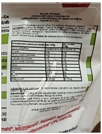 - Nombre del producto: cereales inflados ecológicos con manzana y concentrado de zumo de fresa.